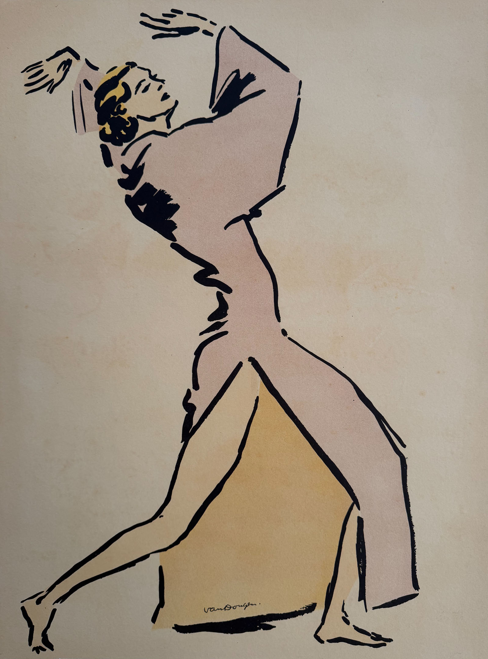 KEES VAN DONGEN - 'ALANOVA' - Lithografisch affiche. 1930. Afmeting papier 68 x 51 cm. Geïllustreerd in Juffermans 'Kees van Dongen - Het Complete Grafische Werk' pagina 174. Slechts 5 exemplaren in zwart/wit en 2 in kleur van dit zeer zeldzame werk zijn bij ons bekend. Alicia Alanova was een beroemde danseres in de jaren '30. Zij was bevriend met Kees van Dongen en woonde korte tijd bij hem in Garches ten westen van Parijs rond 1933.