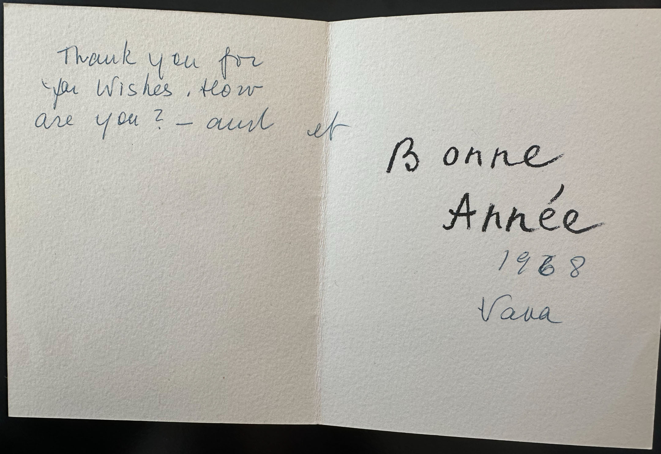 MARC CHAGALL - 'CARTE DE VOEUX'(wenskaart). Litho 1968 op Velin papier, oplage 350. Gesigneerd door Mw. Vava Chagall. Afmeting papier dicht 14,2 x 10,5 cm. Literatuur: Hatje no. 482a