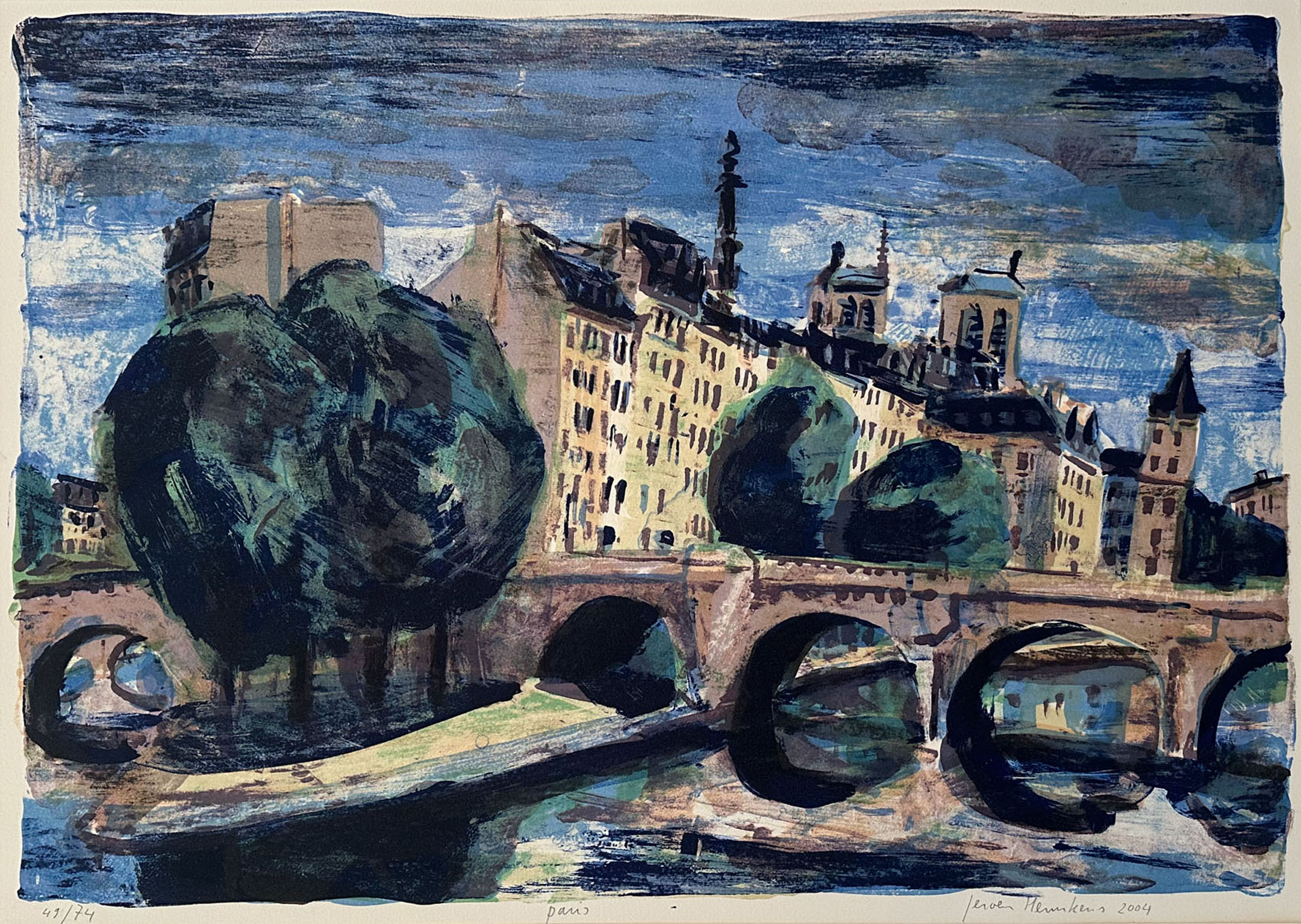 Jeroen Hermkens - 'Parijs' Litho gedrukt in 8 kleuren, 2004 Oplage 74, handgesigneerd. Afmeting beeld 47 x 67 cm Prijs € 350 zonder lijst