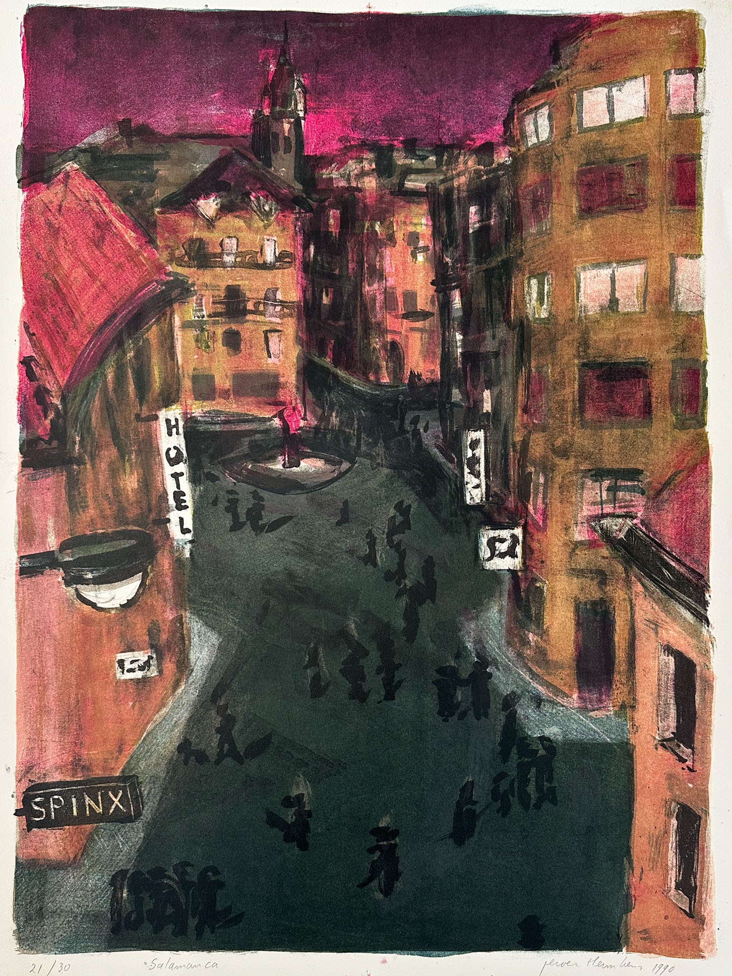 Jeroen Hermkens - Salamanca I Litho in 7 kleuren, 1990 Oplage 30 Beeld afmeting 68 x 49,5 cm Prijs € 350,- zonder lijst